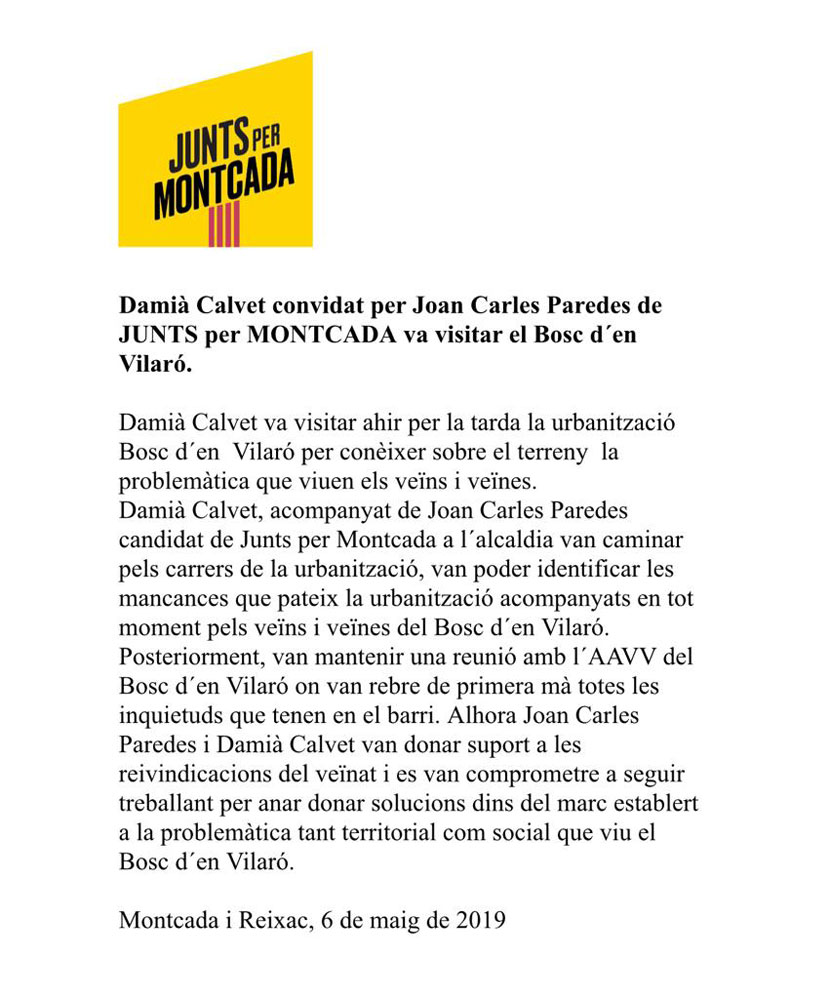 Muy agradecidos a PSC MONTCADA por asistir a la Fiesta Mayor del BOSC , 16 de Junio 2018. Gracias Guadalupe M .Lorenzana y Bartolomé Egea.