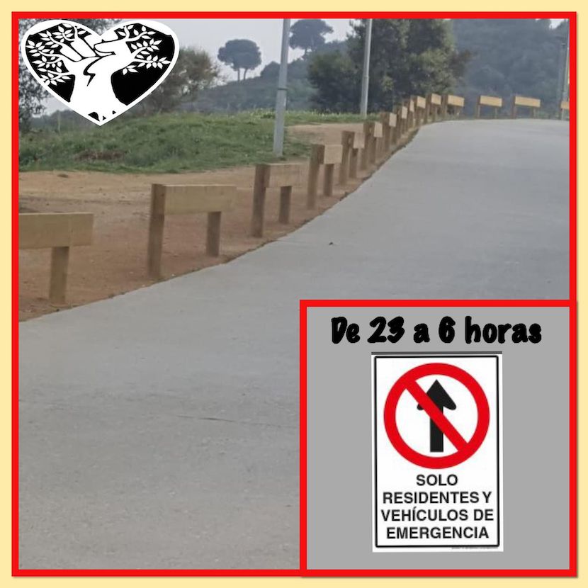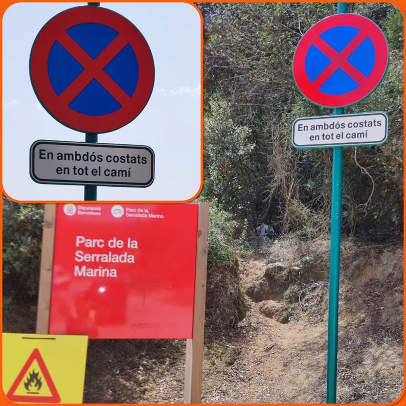 La nueva señalización de prohibido aparcar y estacionar en ambos sentidos de Camí vell a Montcada es para evitar aglomeraciones, impedir invadir la carretera y evitar incendios forestales.