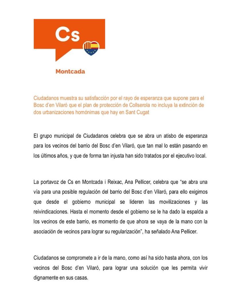 Más información >>Cs propondrá al Parlament la creación de una mesa para tratar la problemática del Bosc d’en Vilaró