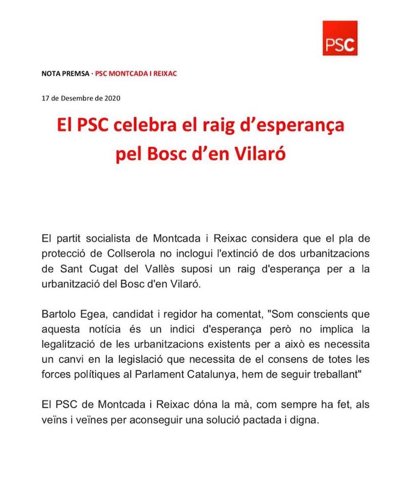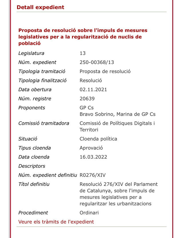 Más información >>Primer paso para legalizar la urbanización del Bosc d’en Vilaró