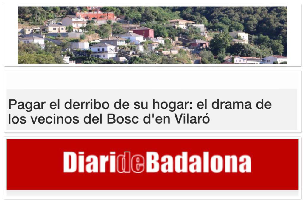 Una quincena de familias residentes en el Bosc d'en Vilaró, urbanización que pertenece a Badalona (20%) ya Montcada (80%) situada en la Serralada de Marina, han recibido notificaciones judiciales conforme han sido activados los expedientes de derribo de sus casas. Además, estos derribos deberían pagarlos directamente los vecinos y vecinas afectados. Por el momento, las notificaciones enviadas han sido por parte del ayuntamiento de Montcada en hogares situados dentro de su término municipal, pero entre los primeros afectados se encuentran personas de Badalona que cambiaron de residencia desde nuestra ciudad hacia la urbanización. Diario de Badalona - Por Bernat López -15 noviembre, 2021